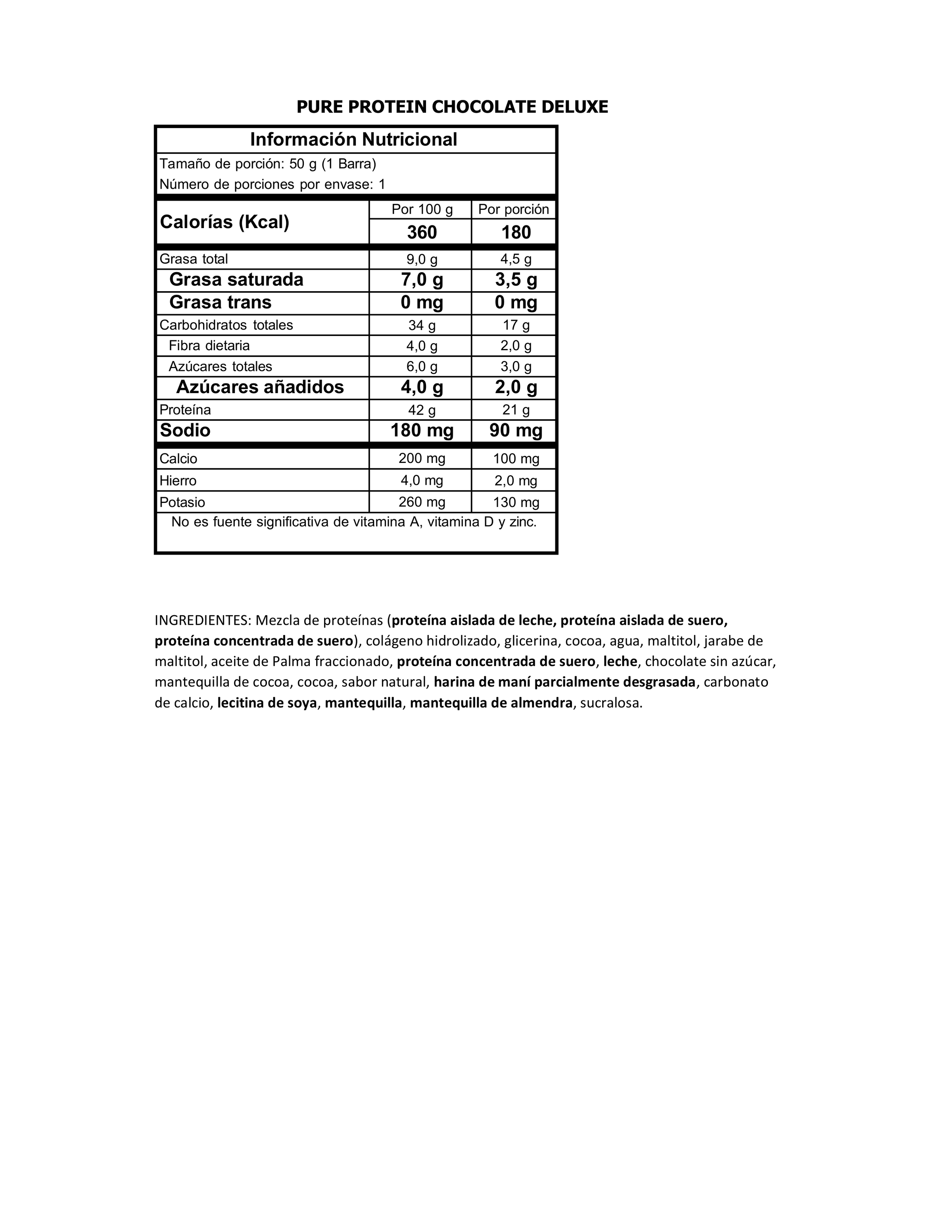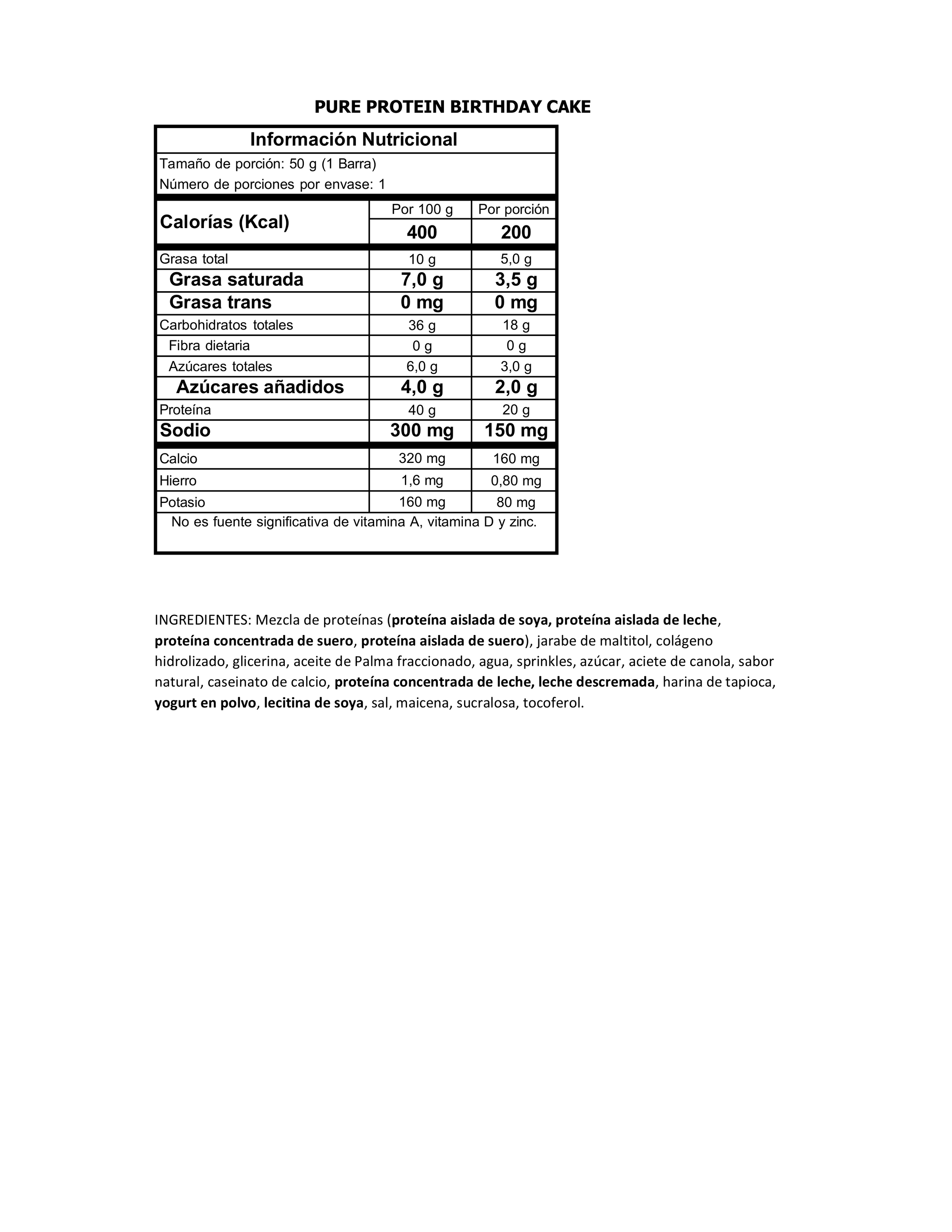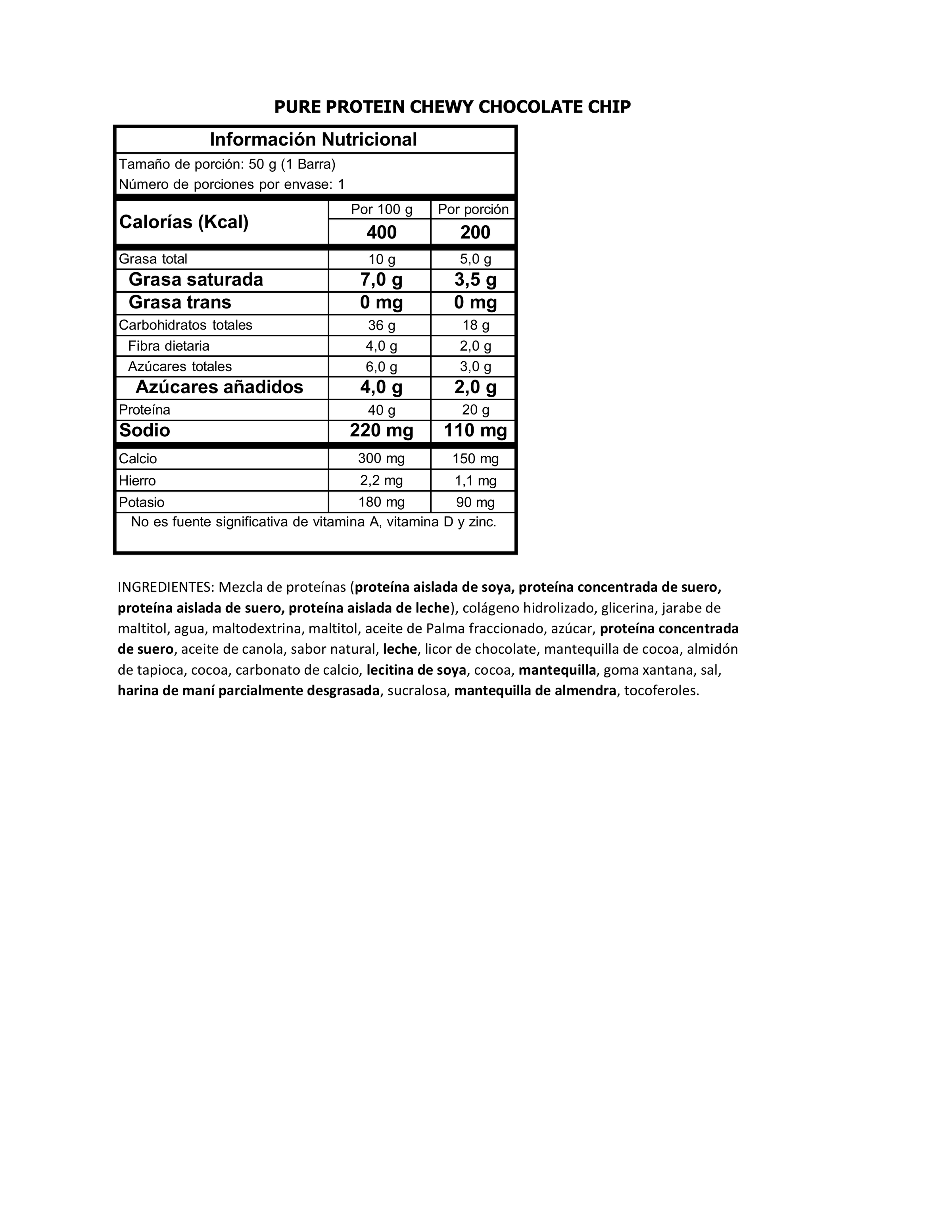 PURE PROTEIN/ 1 BARRA- 50GR